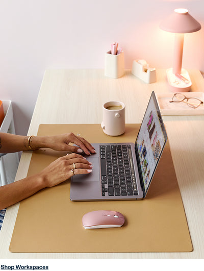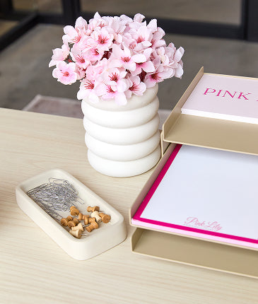 Individual workstations at Pink Lily are designed to balance focus and flexibility. Clean-lined desks and ergonomic chairs create a comfortable setup for deep work, while accessories in blush and neutral tones keep the look on-brand. Every station feels personal yet connected, helping team members stay productive and inspired.