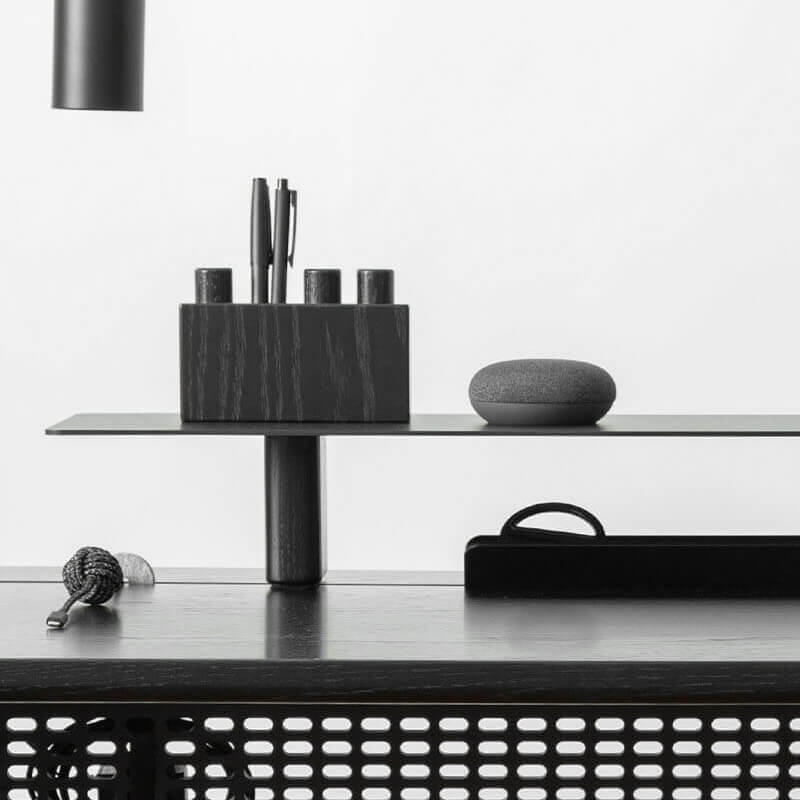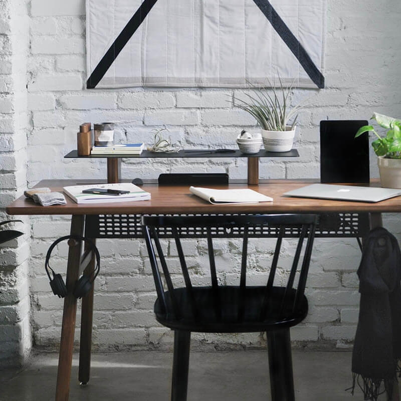 Maximize space with this stand, which works with any surface and pairs especially well with Artifox Lift. Made with solid wood legs and a steel shelf, it’s strong and durable. Based in St. Louis, Artifox approaches design with a minimalist perspective that prioritizes quality.