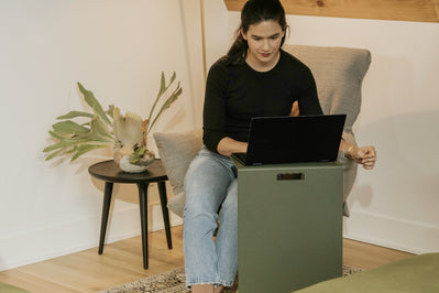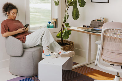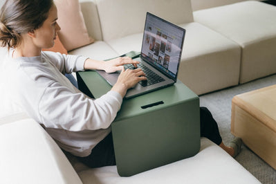 Makers in a small workshop in West Michigan build the Elements table from a single sheet of solid steel. It’s laser cut, bent, and powder-coated for durability and an ultra-smooth finish. Handles make portability easy, letting you work from anywhere, anytime. Turn a desk or table into a standing workstation, or use it on a sofa as a worksurface over your lap. Position it vertically for an instant end table, or use it as a spot to elevate your feet.