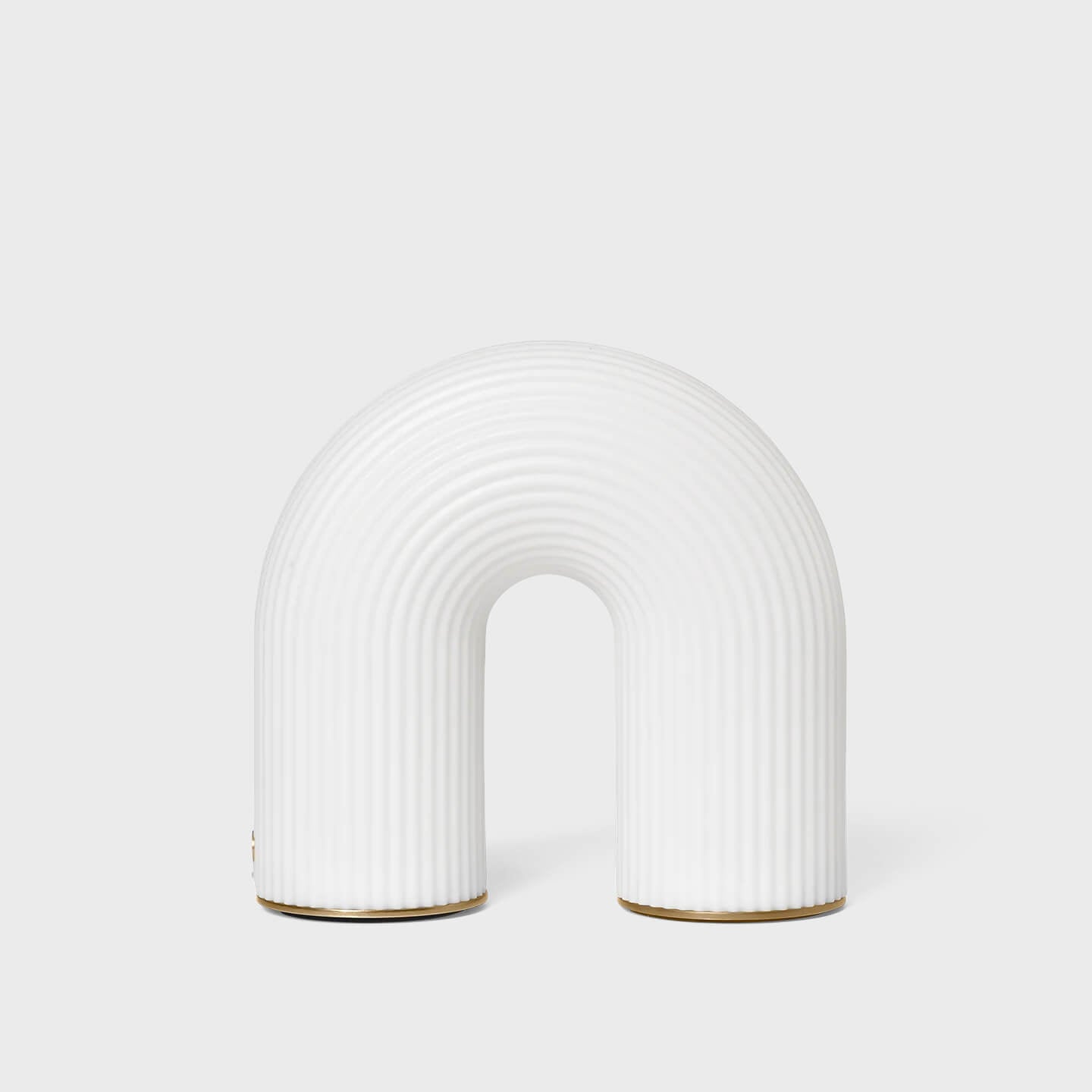 With a sculptural arc inspired by ancient columns, this rechargeable light embodies distinctive style. It’s made by Ferm Living, a Danish design brand known for its strong Scandinavian aesthetic and sustainable techniques.