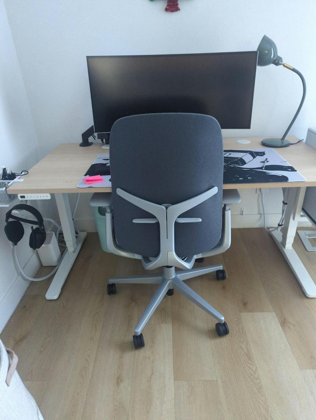 XDual posture supports two positions: sitting down, and the in-between “perch” that’s half sitting, half standing (a common posture with a sit-to-stand desk).